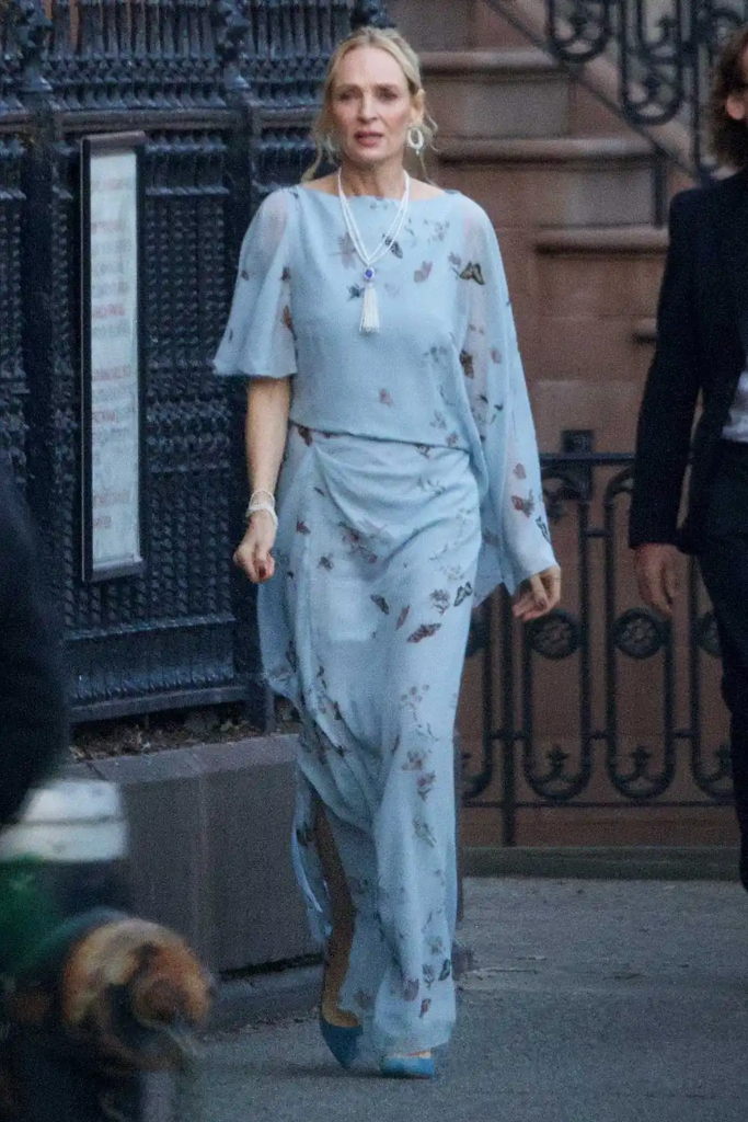 Uma Thurman attended the event wearing a designer gown by Erdem, choosing a soft and elegant look for the special occasion. BACKGRID/Erdem